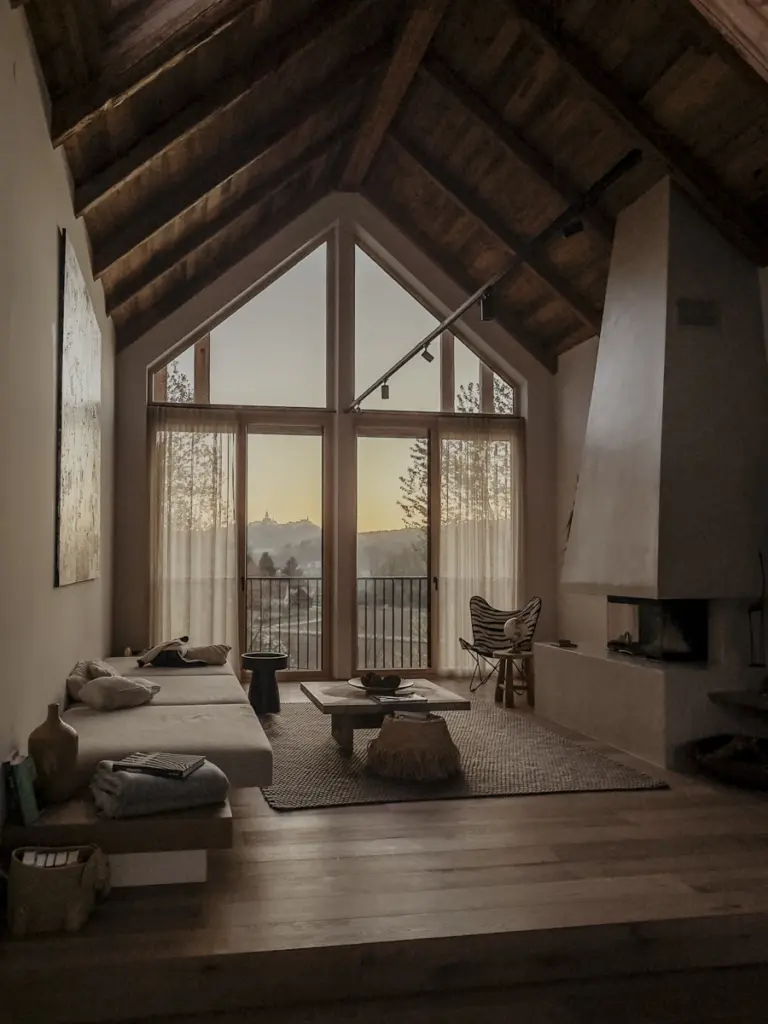 Zurück in unserer schönen Unterkunft, zieht es uns noch in unsere private Sauna. Unter Tags hat man durch die große Glasfront vom Ruhebereich und der Sauna aus, einen einzigartigen Blick ins Grüne. Nach dem Saunaaufguss heißt es für uns ab in die kuschelig weichen Bademäntel und auf die Couch. Ich stelle mir vor, wie gemütlich das in den kalten Wintermonaten sein muss – man liegt gemütlich hier im Wohnzimmer und lauscht dem Knistern des Kaminfeuers gegenüber.