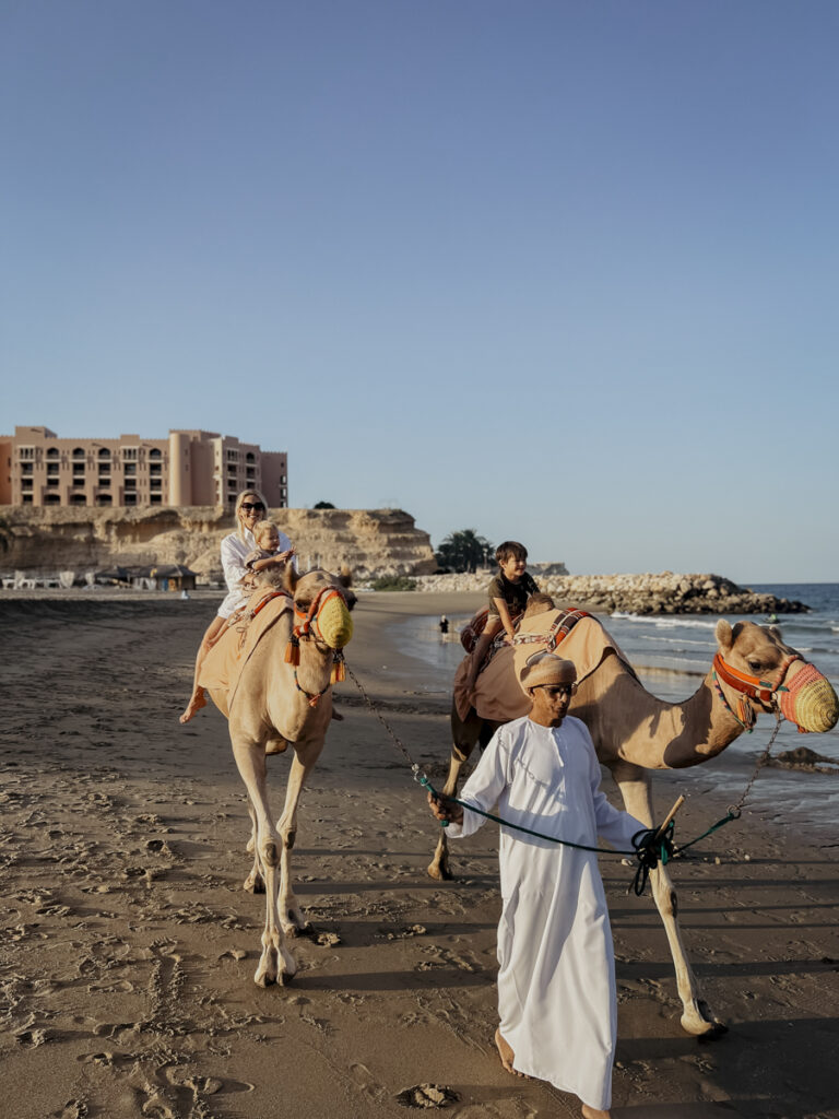für unsere Kinder eine außergewöhnliche Erfahrung. Mein Blick wendet sich von der untergehenden Sonne zu unserem Fünfjährigen, der mit einem Breitmaulfroschgrinsen schon alleine auf seinem Kamel reitet und unserer Zweijährigen, die vor meiner Frau sitzend das sanft wiegende Schreiten ihrer Kameldame genießt. Ihre Augen leuchten.