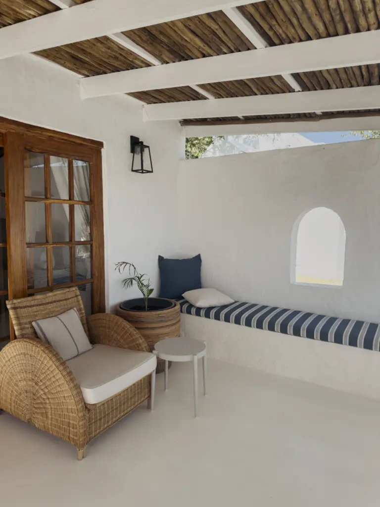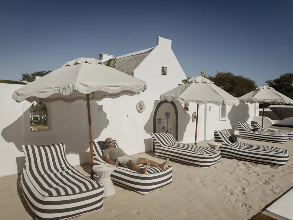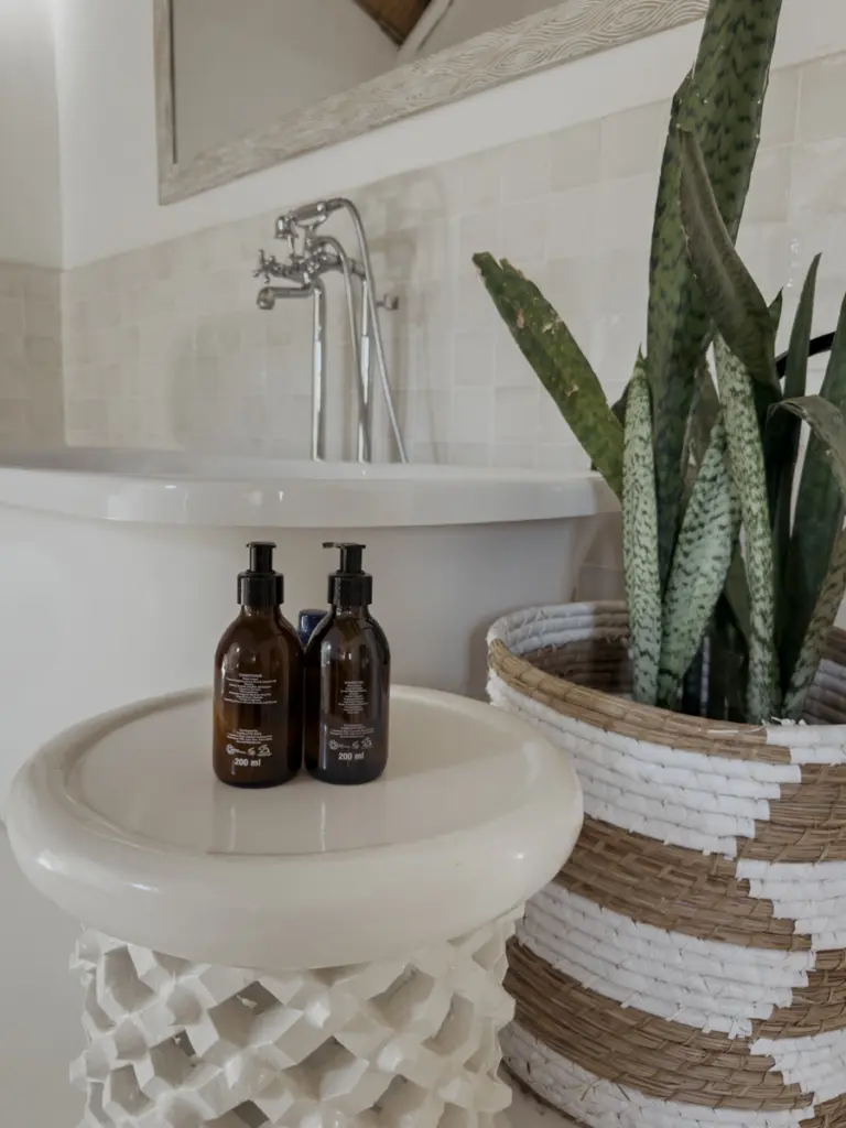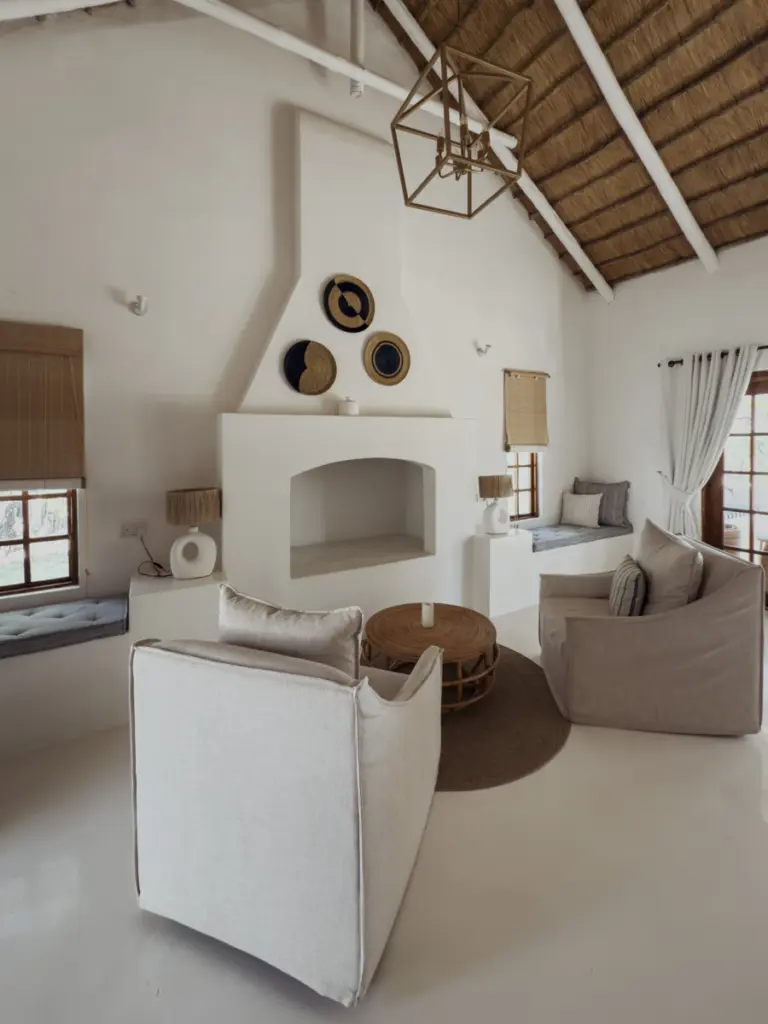 Die Cottages erinnern uns sofort an Südafrika: charmant, geschmackvoll, mit durchdachten Details und einem wunderbar luftigen Interieur. Weiße Wände, dunkle Holzelemente, natürliche Texturen und eine Gestaltung, die lokale Handwerkskunst und modernen Minimalismus verbindet.